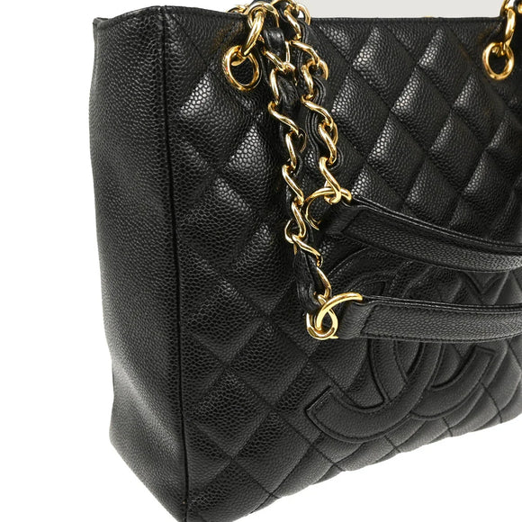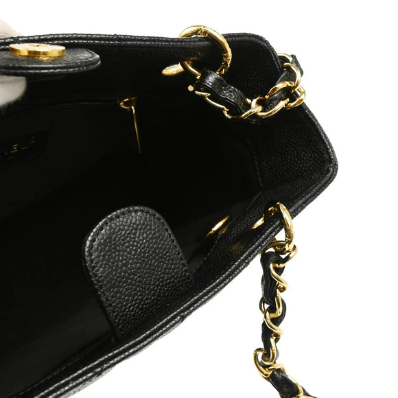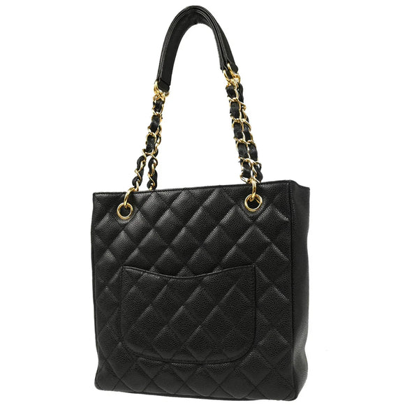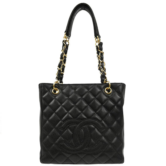 Chanel 2008-2009 Black Caviar Petite Shopping Tote PST Chain Handbag