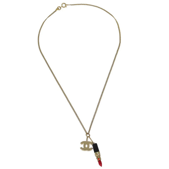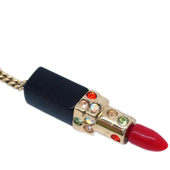 Chanel Lipstick Gold Pendant Necklace Rhinestone 04A