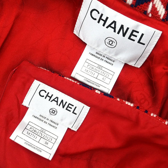 Chanel 2004 Setup Suit Jacket Skirt Red #42 #38