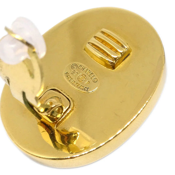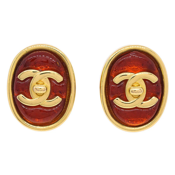 Chanel Oval Turnlock Gripoix Earrings Clip-On Red 97P