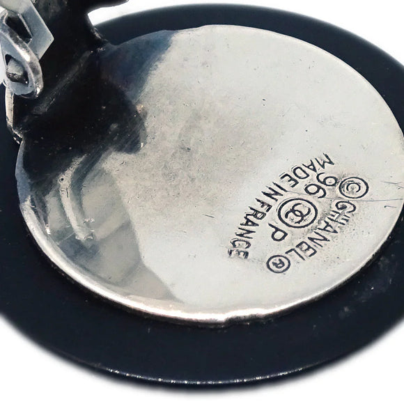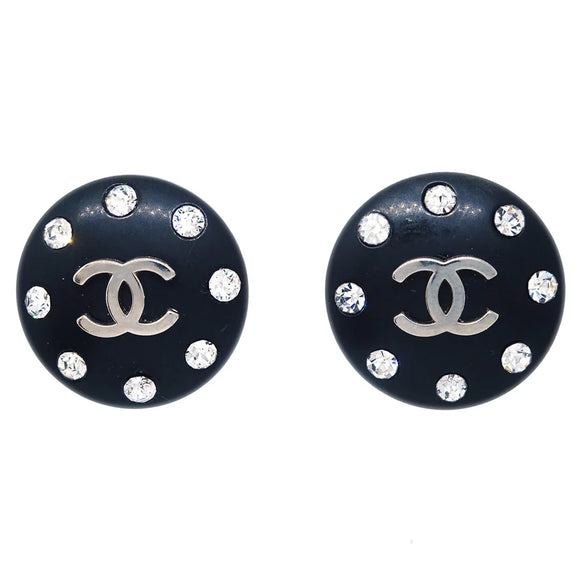 Chanel Button Earrings Clip-On Rhinestone Black 96P