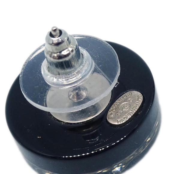 Chanel Button Piercing Earrings Black Rhinestone Costume Pearl 14C
