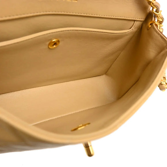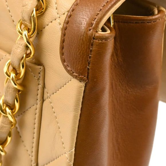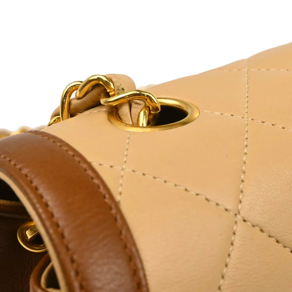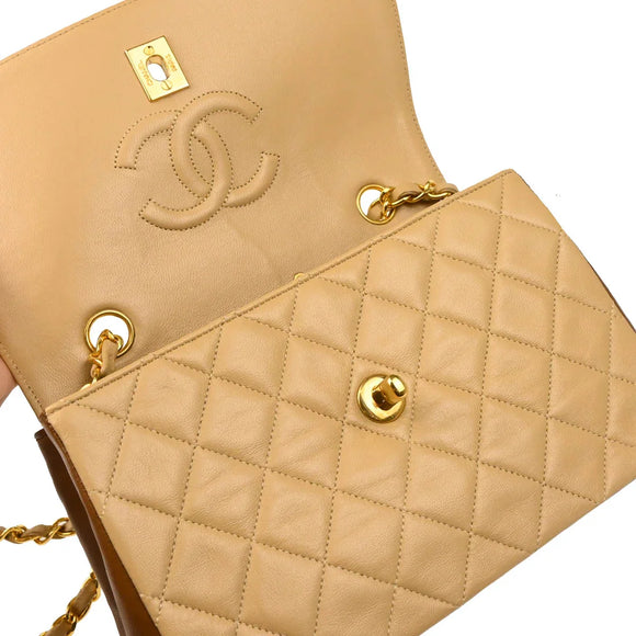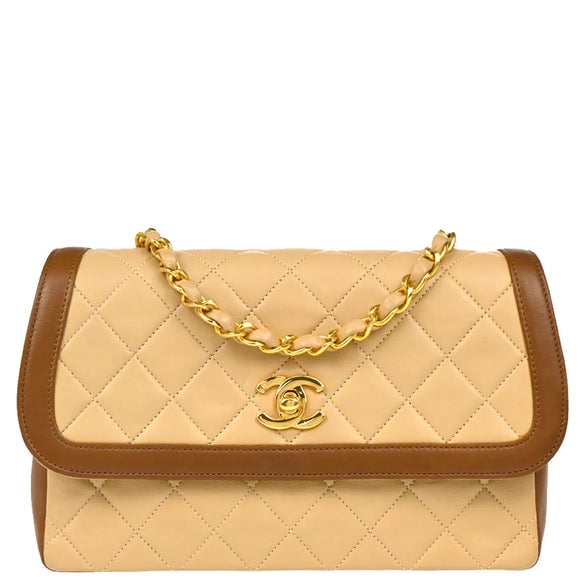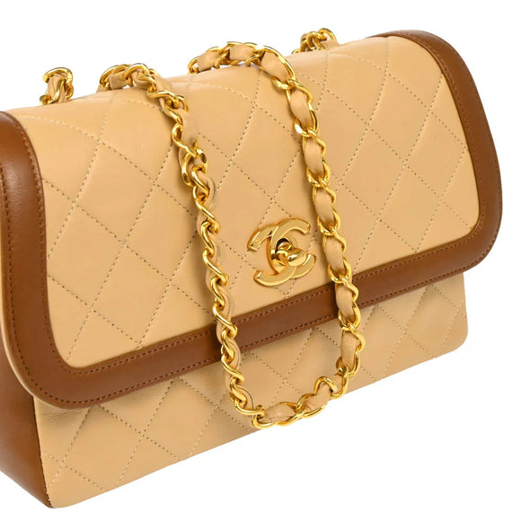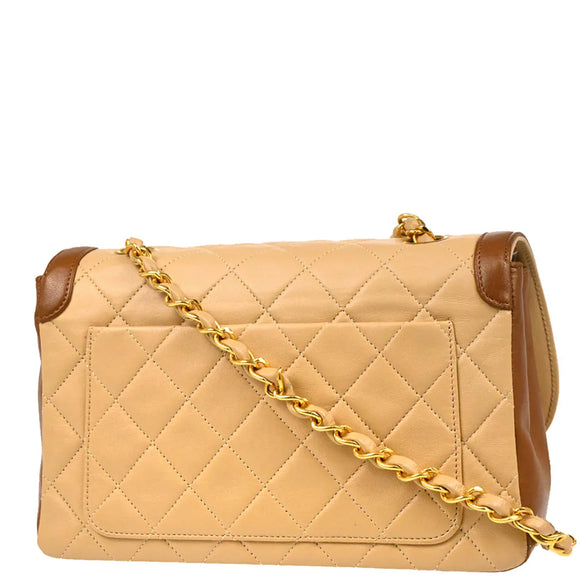 Chanel 1989-1991 Beige Brown Lambskin Shoulder Bag
