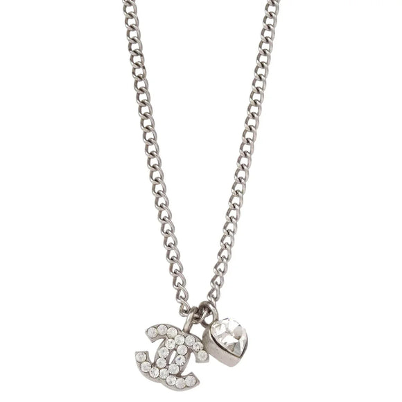 Chanel CC Chain Necklace Pendant Rhinestone Silver 04A