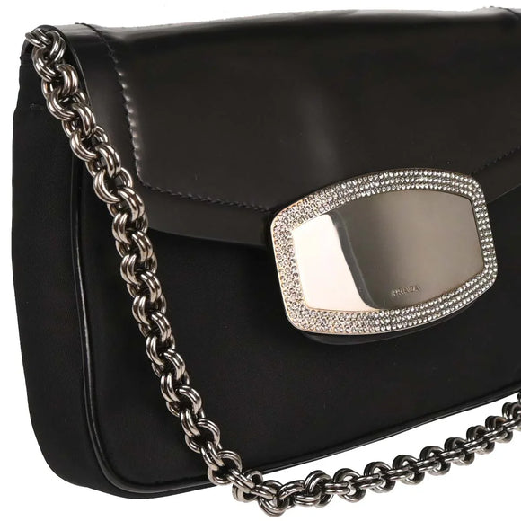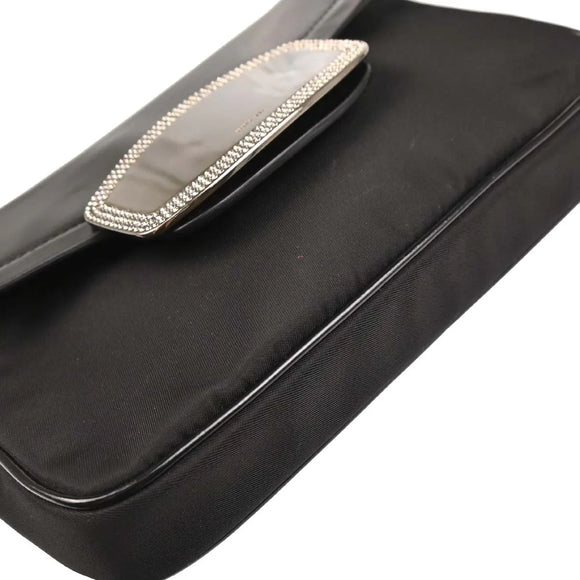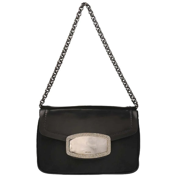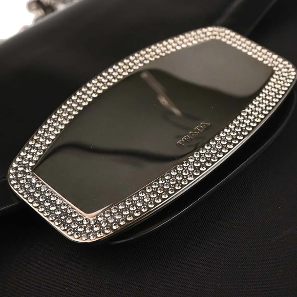 Prada Black Nylon Leather Rhinestone Handbag