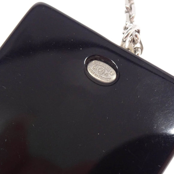 Chanel Silver Acrylic Rectangle Pendant Necklace Rhinestone 04A