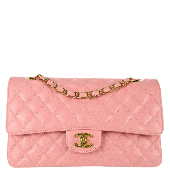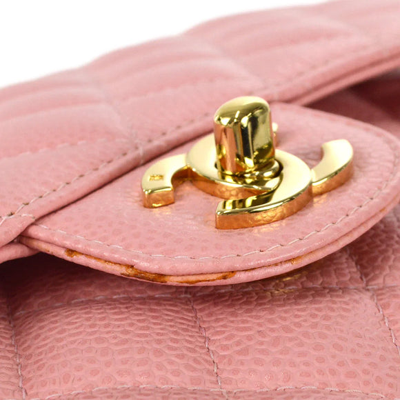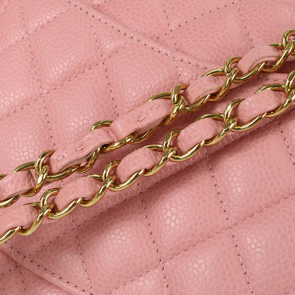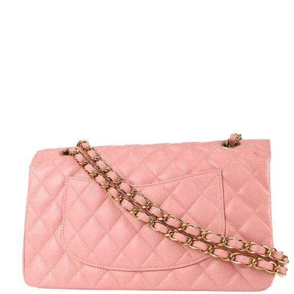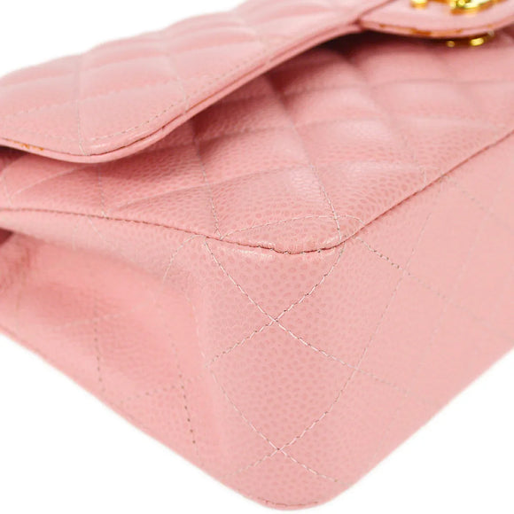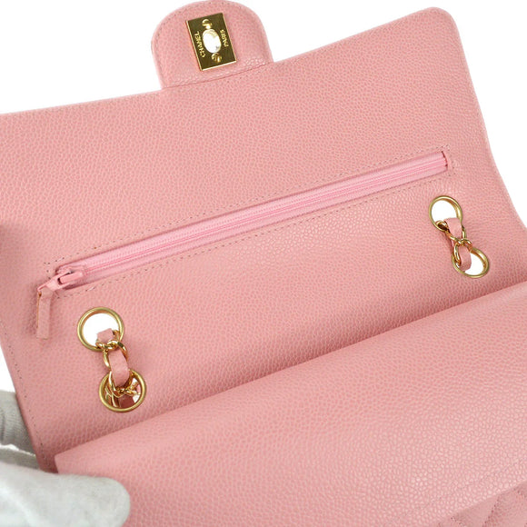 Chanel 2003-2004 Pink Caviar Medium Classic Double Flap Shoulder Bag