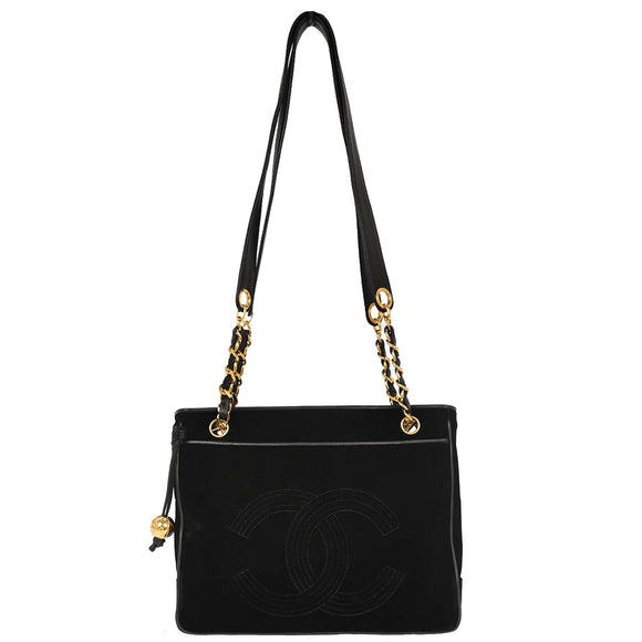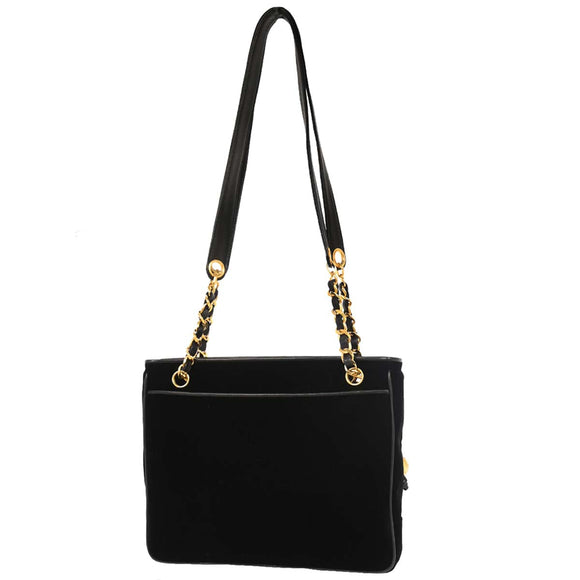 Chanel Black Velvet Shoulder Tote Bag