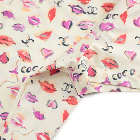 Chanel Lips Print Cropped T-shirt Ivory P95 #42