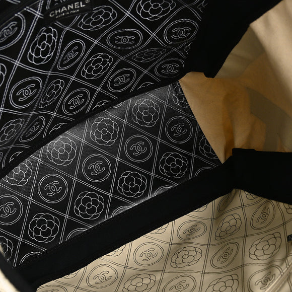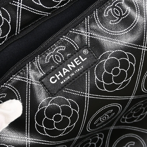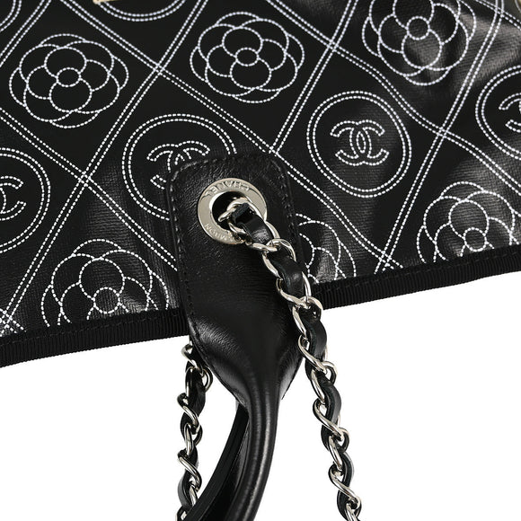 Chanel 2018 Black Printed Coated Canvas Camellia Shopping 2way Shoulder Tote Handbag