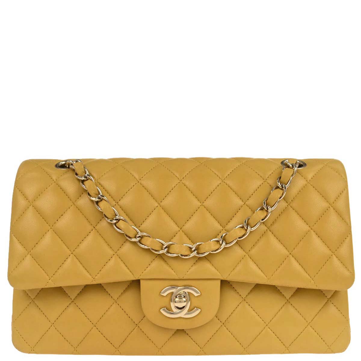Chanel Yellow Lambskin Medium Classic Double Flap Shoulder Bag