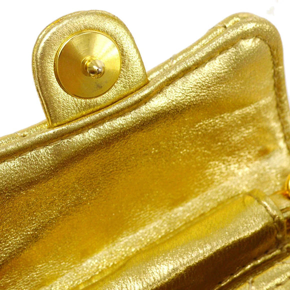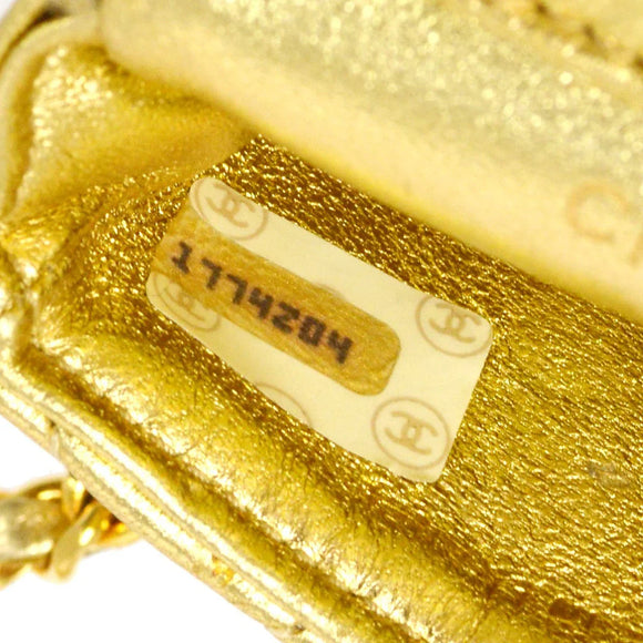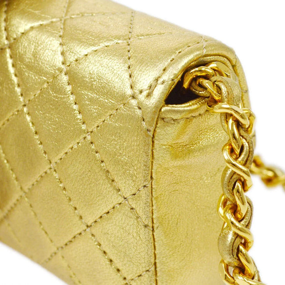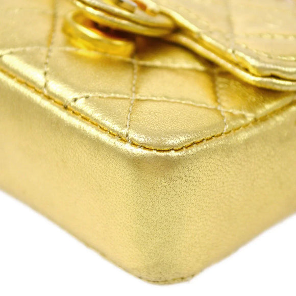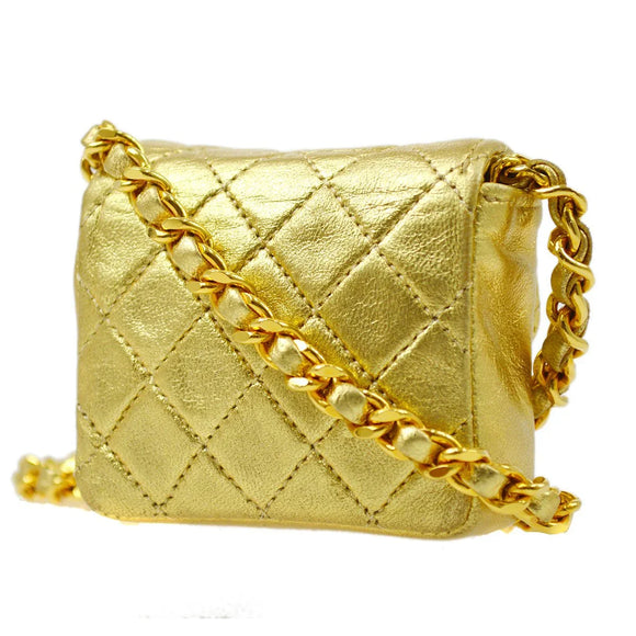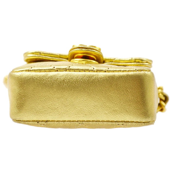 Chanel 1989-1991 Gold Lambskin Micro Classic Flap Shoulder Bag