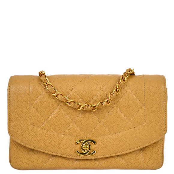 Chanel 1994-1996 Beige Caviar Small Diana Shoulder Bag