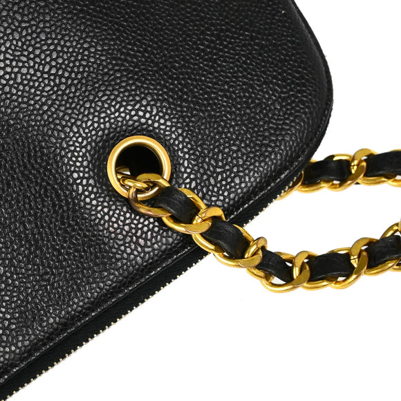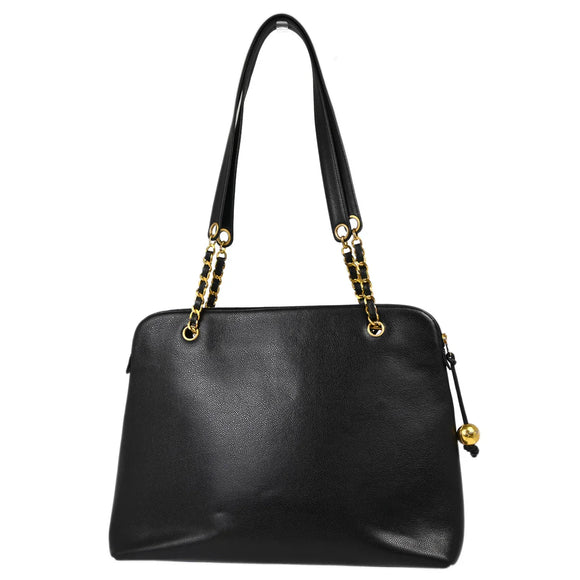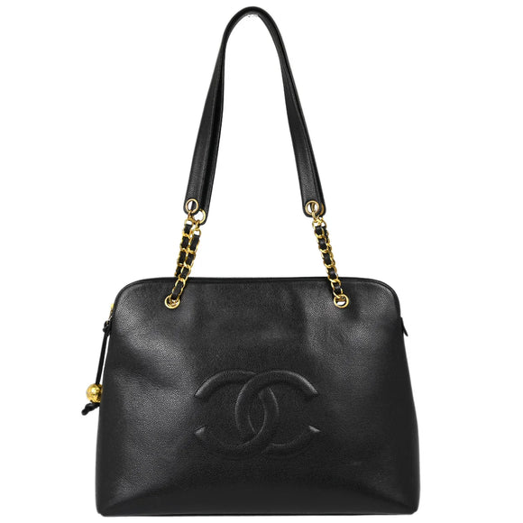 Chanel 1994-1996 Black Caviar Chain Shoulder Tote Bag
