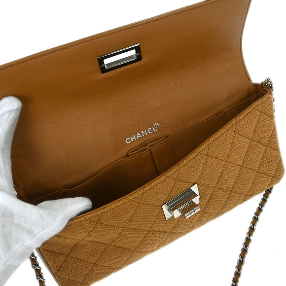 Chanel Brown Cotton East West Mademoiselle Lock Shoulder Bag