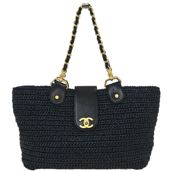 Chanel 2005-2006 Black Straw Chain Tote Handbag
