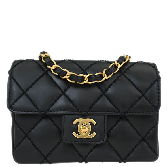Chanel Black Calfskin Wild Stitch Single Flap Shoulder Bag