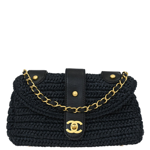 Chanel 2005-2006 Black Straw Shoulder Bag