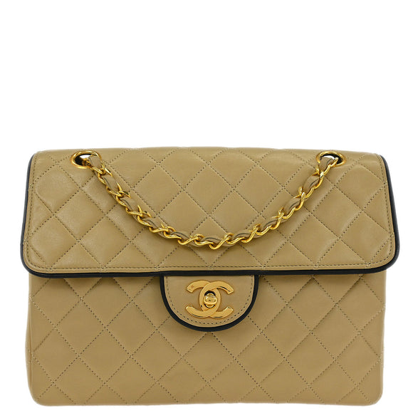 Chanel Beige Lambskin Single Flap Shoulder Bag