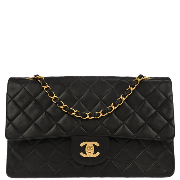 Chanel 1996-1997 Black Lambskin Medium Classic Double Flap Shoulder Bag