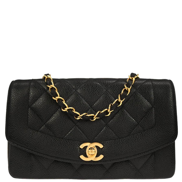 Chanel 1991-1994 Black Caviar Skin Small Diana Shoulder Bag