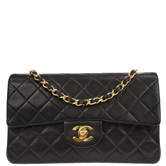Chanel 1996-1997 Black Lambskin Small Classic Double Flap Shoulder Bag