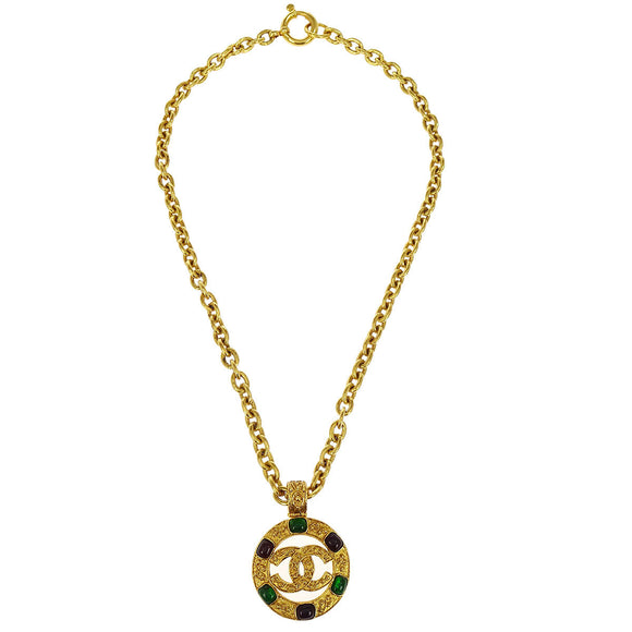 Chanel Gripoix Gold Chain Pendant Necklace Medallion 94A