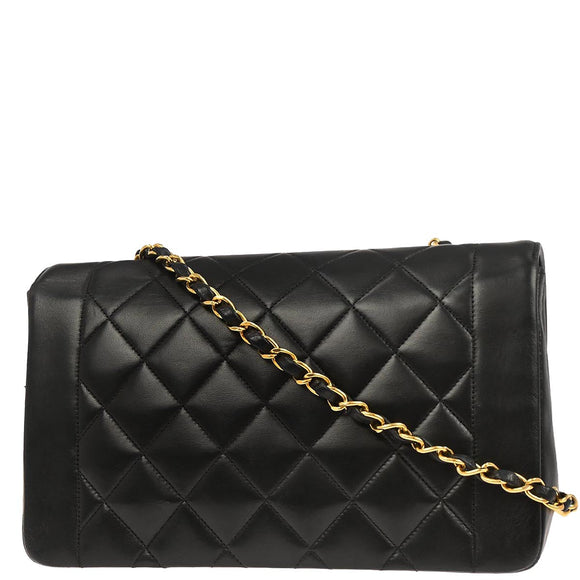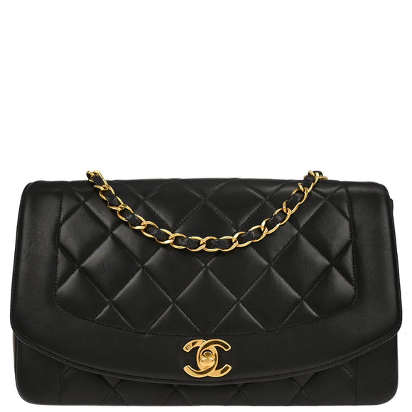 Chanel 1991-1994 Black Lambskin Medium Diana Shoulder Bag