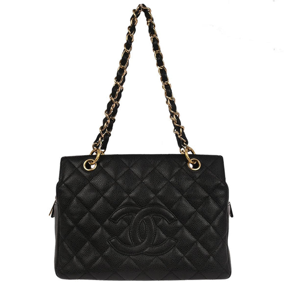 Chanel 2003-2004 Black Caviar Skin Petite Timeless Tote PTT Chain Handbag