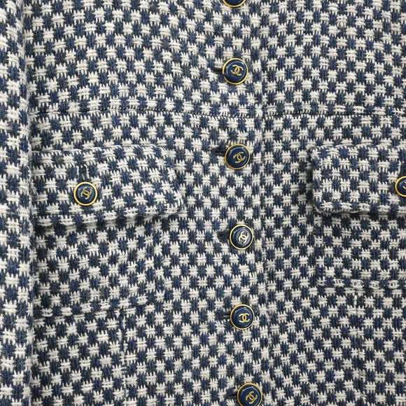 Chanel 1995 Single Breasted Collarless Jacket Navy #42