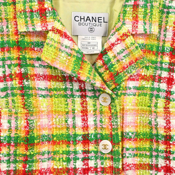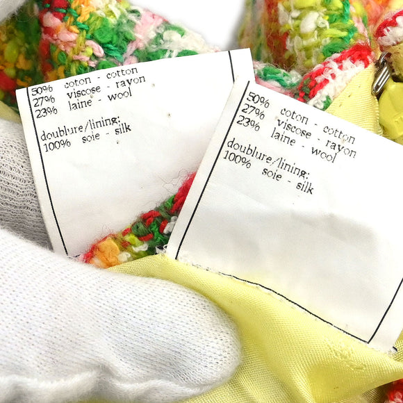 Chanel 1997 Setup Suit Jacket Skirt Tweed Yellow-green #40