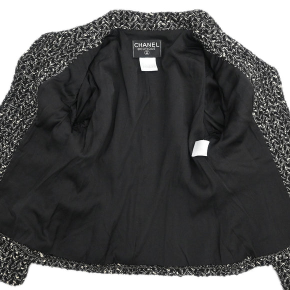 Chanel 1997 Setup Suit Jacket Skirt Tweed Black #40