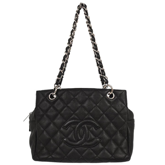 Chanel 2006-2008 Black Caviar Skin Petite Timeless Tote PTT Chain Handbag