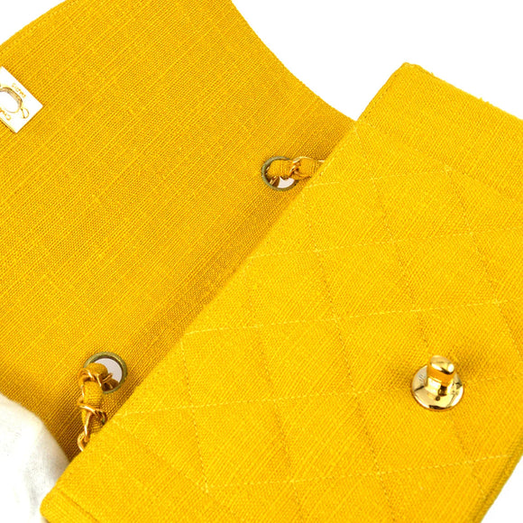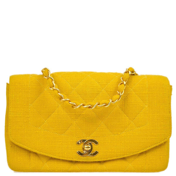 Chanel 1991-1994 Yellow Linen Small Diana Flap Bag
