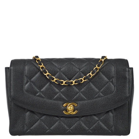 Chanel 1997-1999 Black Caviar Medium Tall Diana Shoulder Bag