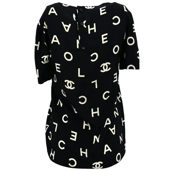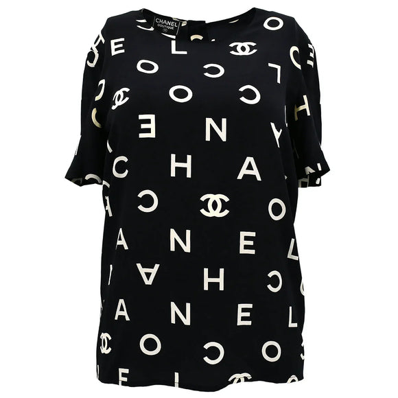 Chanel Spring 1997 Short Sleeve Shirt Blouse Top Black #38