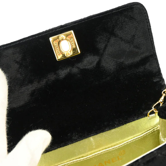 Chanel 1996-1997 Black Velvet Chain Shoulder Bag