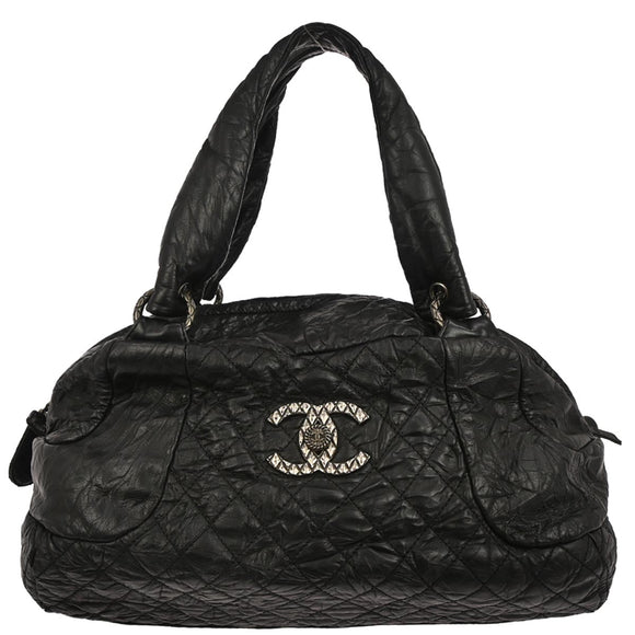 Chanel 2009-2010 Black Calfskin Coco Rider Bowling Bag Handbag