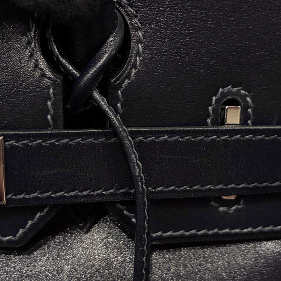 Hermes Blue Indigo Box Calf Birkin 30 Handbag