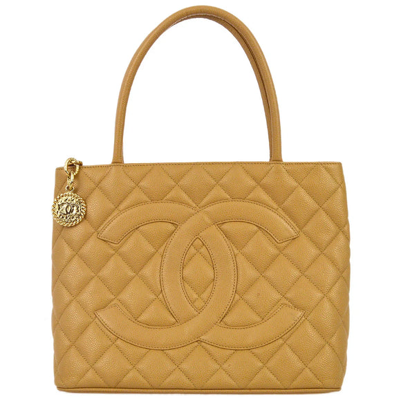 Chanel 2006-2008 Beige Caviar Medallion Tote