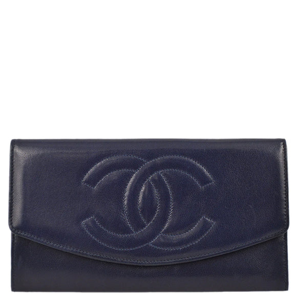 Chanel 1991-1994 Navy Lambskin Timeless Long Wallet
