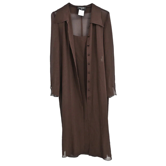 Chanel 1997 Setup Suit Blouse Sleeveless Dress Brown