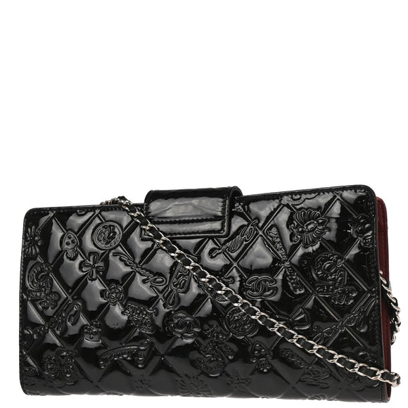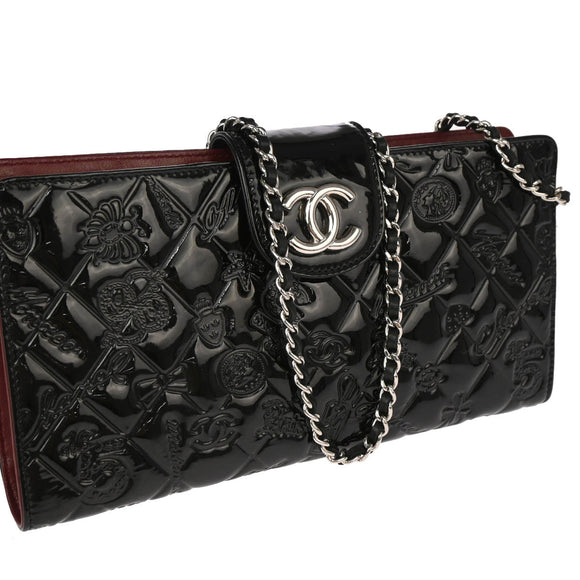 Chanel 2010-2011 Black Patent Leather Icon WOC Shoulder Wallet Bag