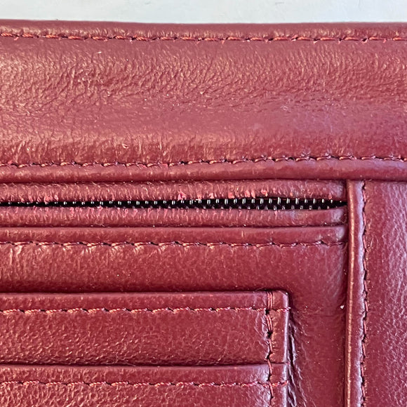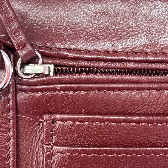 Peeling of the leather on the sides of the interior (near the zipper and opposite side of the zipper).