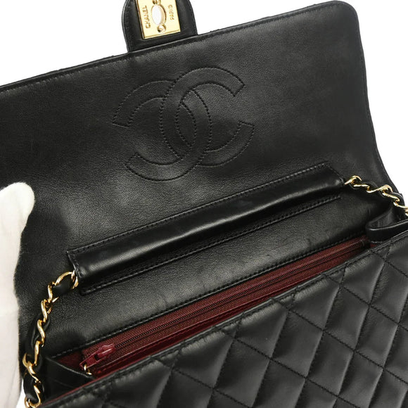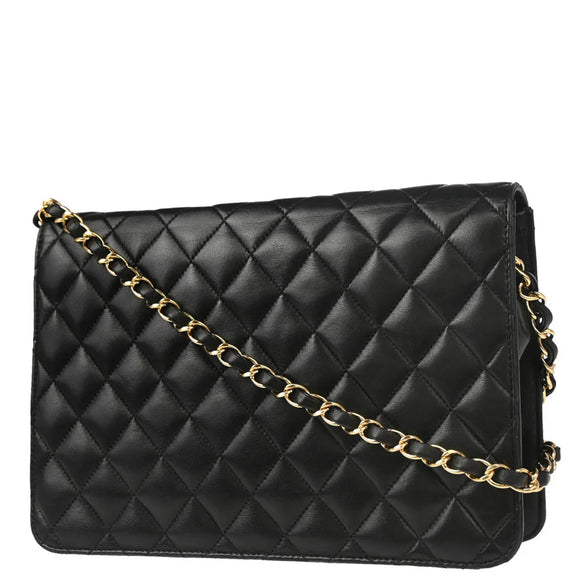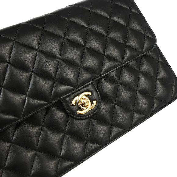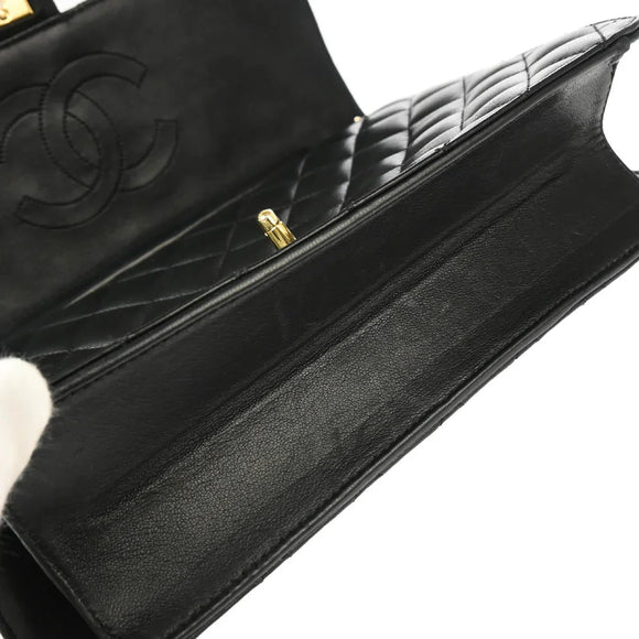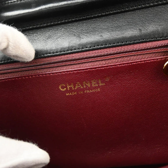 Chanel 2008-2009 Black Lambskin Turnlock Medium Half Flap Shoulder Bag