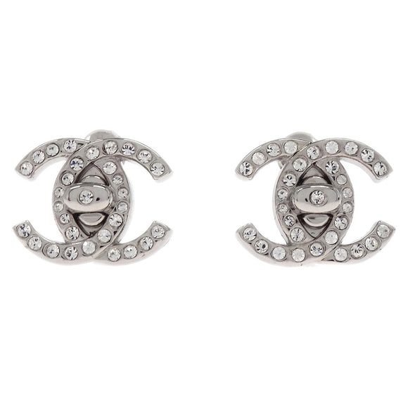 Chanel CC Turnlock Clip-On Earrings Silver Rhinestone Small 96A