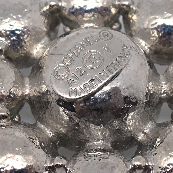 Chanel Dangle Pierced Earrings Rhinestone Silver A12V