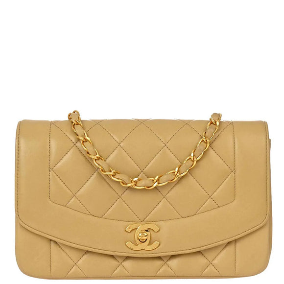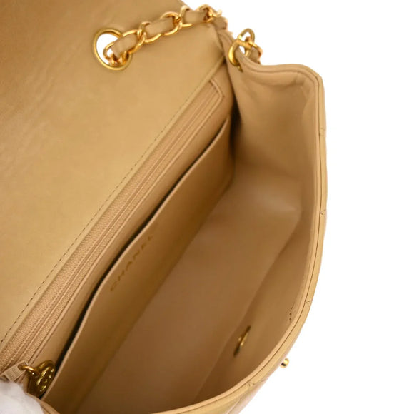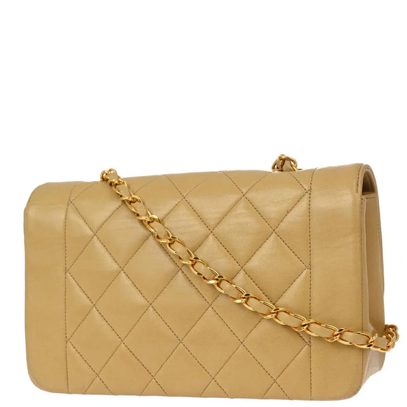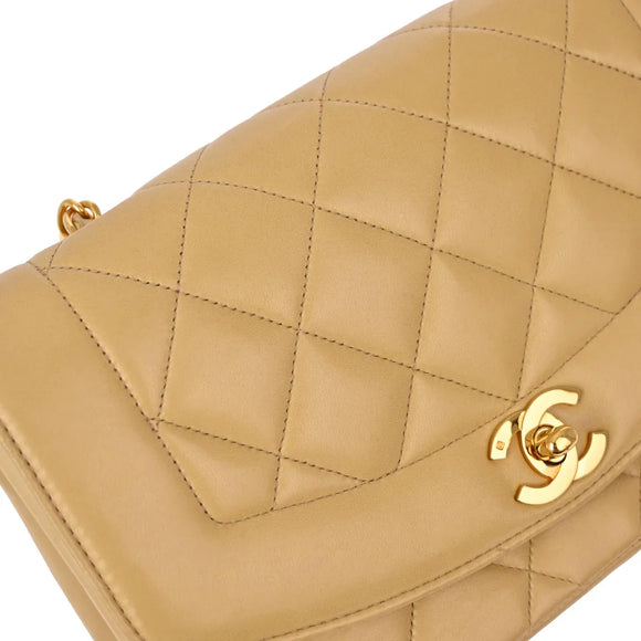 Chanel 1991-1994 Beige Lambskin Small Diana Shoulder Bag