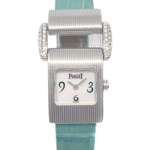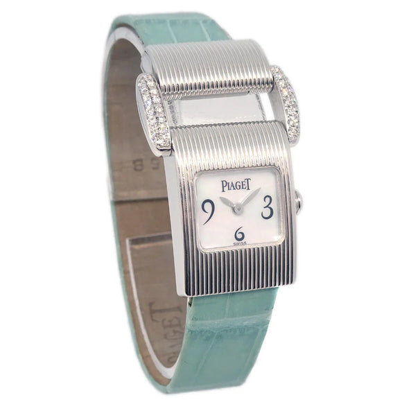 Piaget Miss Protocole Ref.5222 Quartz Watch 18KWG Diamond Light Blue Crocodile