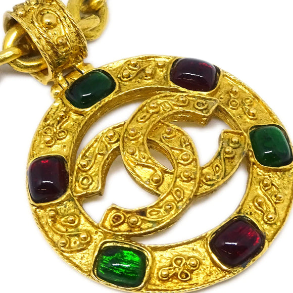 Chanel Gripoix Gold Chain Pendant Necklace 94A